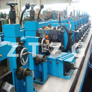 This high frequency longitudinal welded pipe production line, or simply ERW pipe making machine, is designed to produce welded pipes of 10mm-32mm in OD and 0.3mm-2.0mm in wall thickness, as well as corresponding square and rectangular pipes.